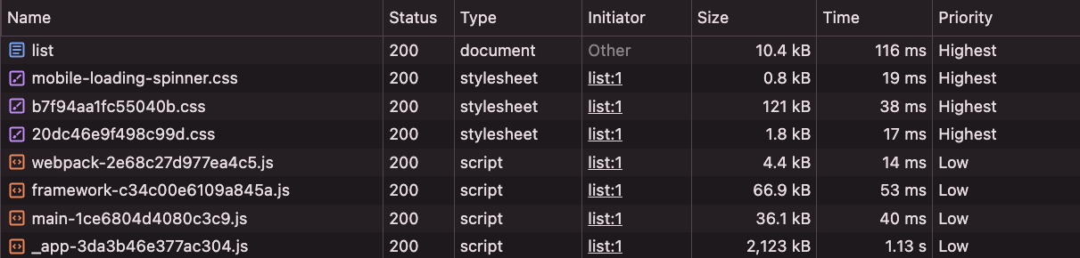 Chrome DevTools Network 탭에서는 다음과 같이 보입니다.