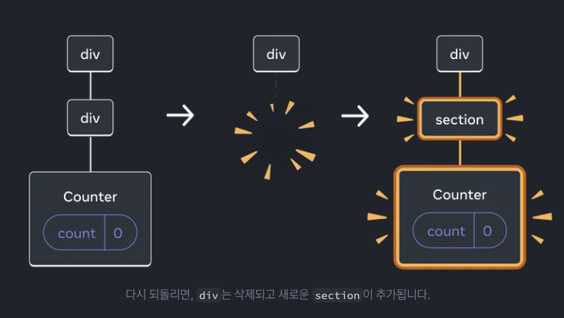 여기서 다시 Counter컴포넌트의 상태는 isFancy에 따라 초기화될까요? 보존될까요?