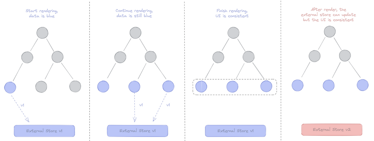 외부 store가 변경되면, React는 즉시 동기적으로 재렌더링을 수행하여 UI 일관성을 보장합니다.