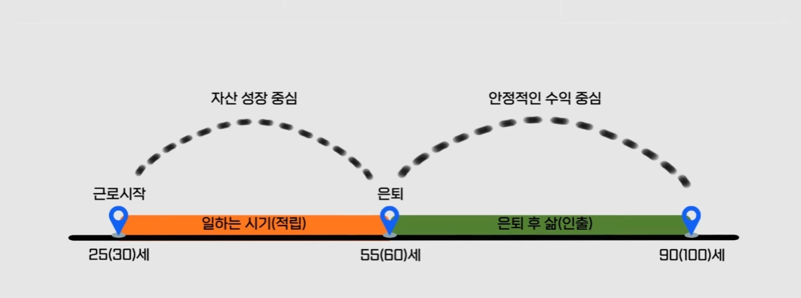 우선 연금은 월급이 끊긴 은퇴 이후의 삶의 생존수단이다. 나는 은퇴 이후의 삶을 3부인생이라고 부른다. 그렇다면 그 전 단계인 2부 인생은 경제활동 시기라 할 수 있는데 노동 소득에 의존하는 시기이다. 이 경제활동 시기에 발생하는 노동 소득을 3부 인생의 생존 수단인 연금으로 전환해야 한다. 이런 이유로 소득의 많은 부분은 연금 전환에 사용되고 있다.