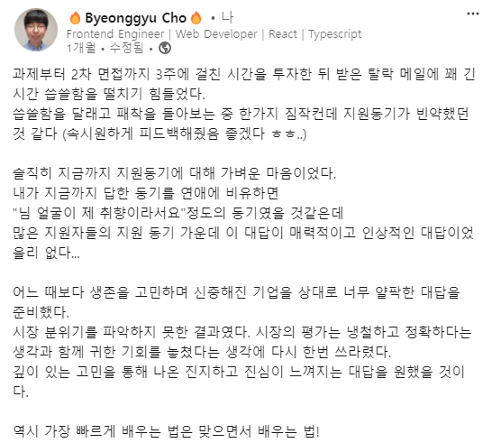 이 글을 보시는 분들은 저와 같은 실수로 3주에 걸친 긴 채용 프로세스의 마지막 단계에서 탈락하시는 일 없으시길 바랍니다.